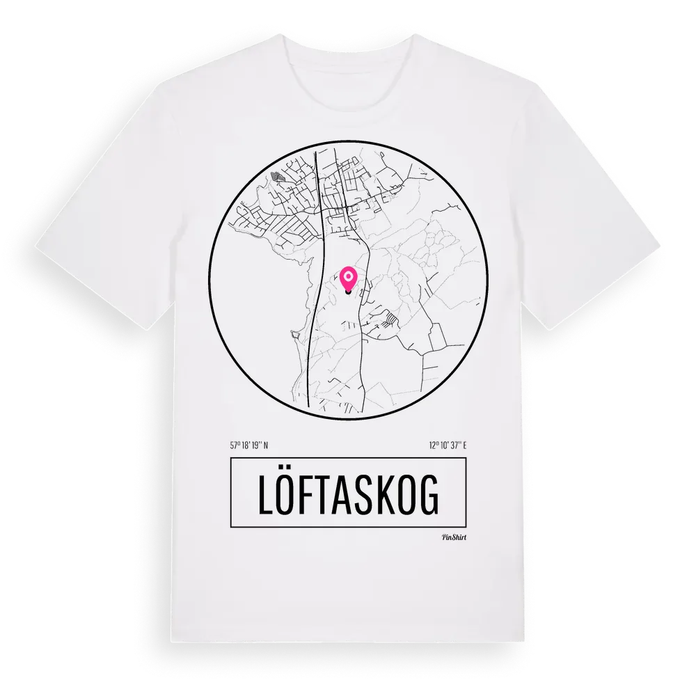 Löftaskog t-shirt är inspirerad av byn Löftaskog i Hallands län, Sverige. Tröjan är designad för dig som har en speciell koppling till platsen – oavsett om du bor här, har rötterna här eller bara älskar Löftaskog.