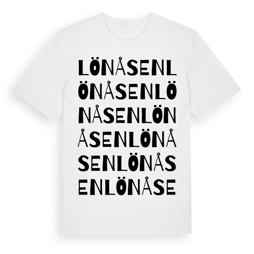Lönåsen ordlek t-shirt är inspirerad av Lönåsen i Hallands län, Sverige. Tröjan är designad för dig som har en speciell koppling till platsen – oavsett om du bor här, har rötterna här eller bara älskar Lönåsen.