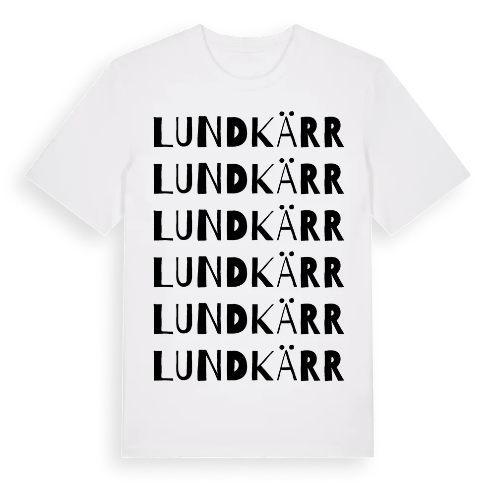 Lundkärr ordlek t-shirt är inspirerad av Lundkärr i Hallands län, Sverige. Tröjan är designad för dig som har en speciell koppling till platsen – oavsett om du bor här, har rötterna här eller bara älskar Lundkärr.