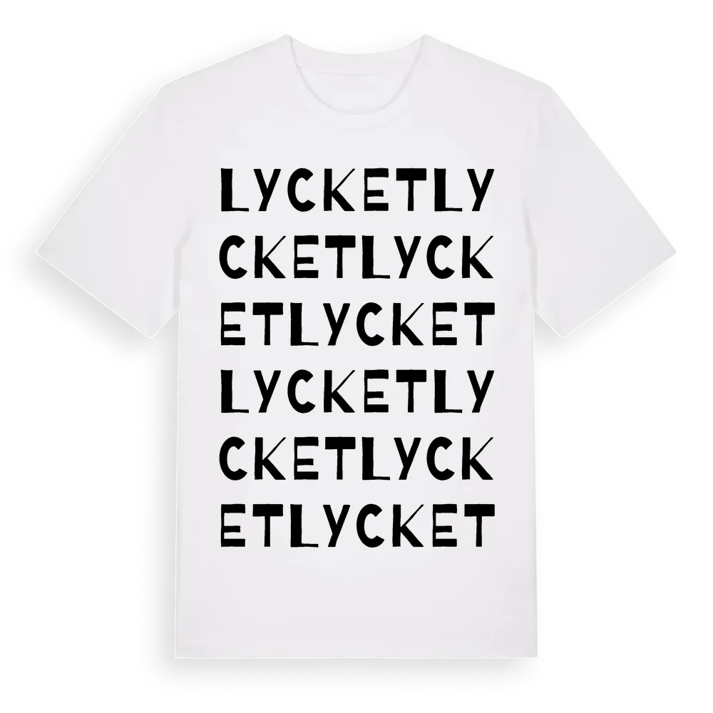 Lycket ordlek t-shirt är inspirerad av byn Lycket i Hallands län, Sverige. Tröjan är designad för dig som har en speciell koppling till platsen – oavsett om du bor här, har rötterna här eller bara älskar Lycket.