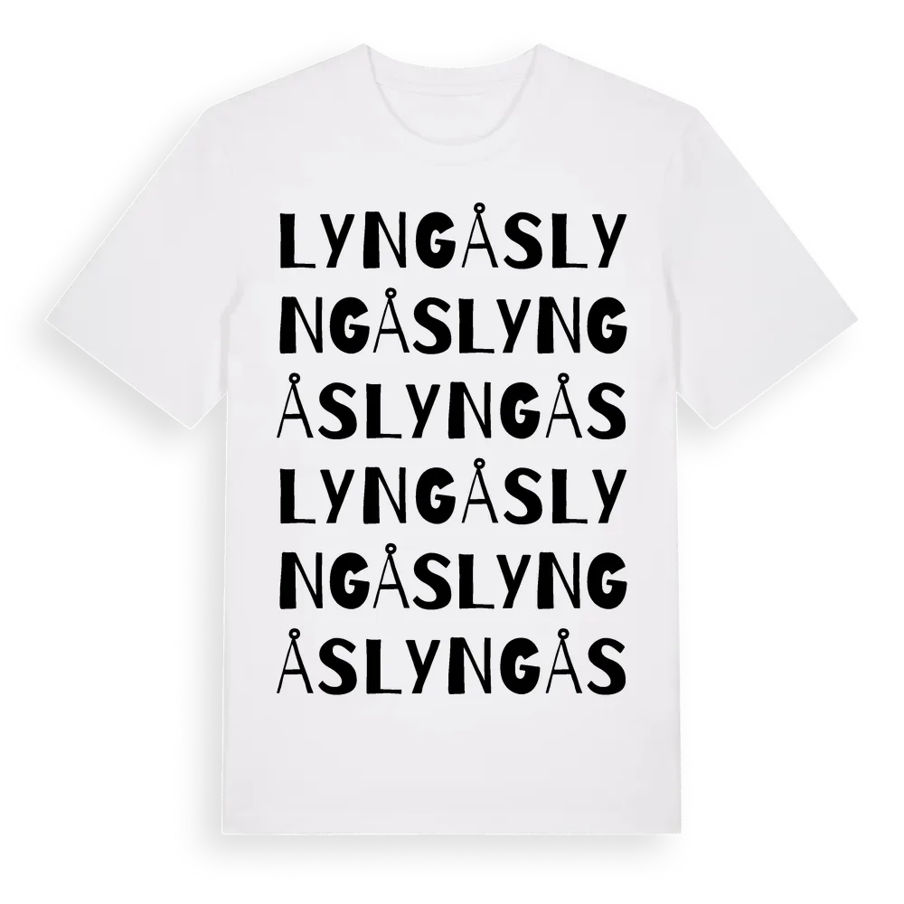 Lyngås ordlek t-shirt är inspirerad av Lyngås i Hallands län, Sverige. Tröjan är designad för dig som har en speciell koppling till platsen – oavsett om du bor här, har rötterna här eller bara älskar Lyngås.