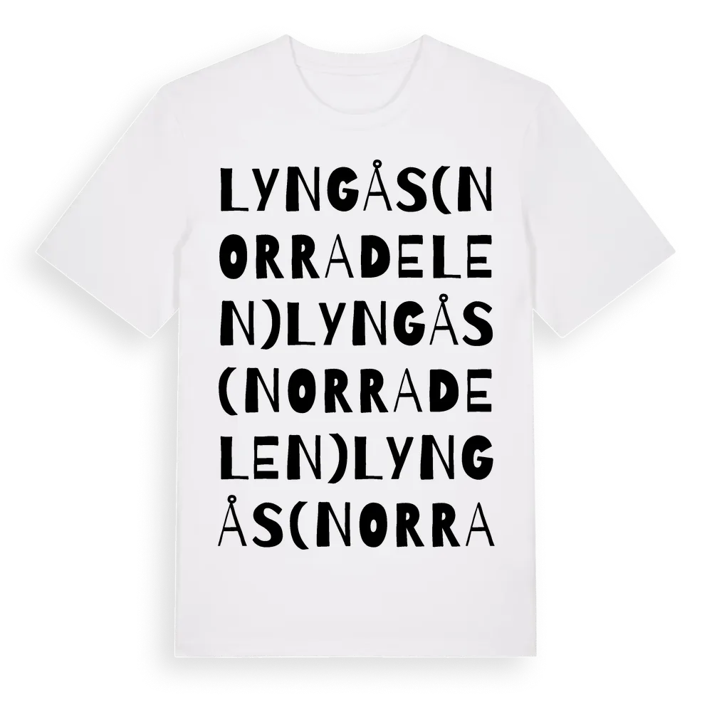 Lyngås ( Norra Delen) ordlek t-shirt är inspirerad av byn Lyngås ( Norra Delen) i Hallands län, Sverige. Tröjan är designad för dig som har en speciell koppling till platsen – oavsett om du bor här, har rötterna här eller bara älskar Lyngås ( Norra Delen).