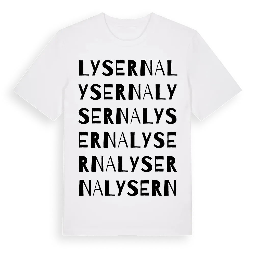 Lyserna ordlek t-shirt är inspirerad av Lyserna i Hallands län, Sverige. Tröjan är designad för dig som har en speciell koppling till platsen – oavsett om du bor här, har rötterna här eller bara älskar Lyserna.