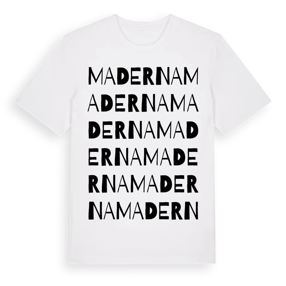 Maderna ordlek t-shirt är inspirerad av Maderna i Hallands län, Sverige. Tröjan är designad för dig som har en speciell koppling till platsen – oavsett om du bor här, har rötterna här eller bara älskar Maderna.