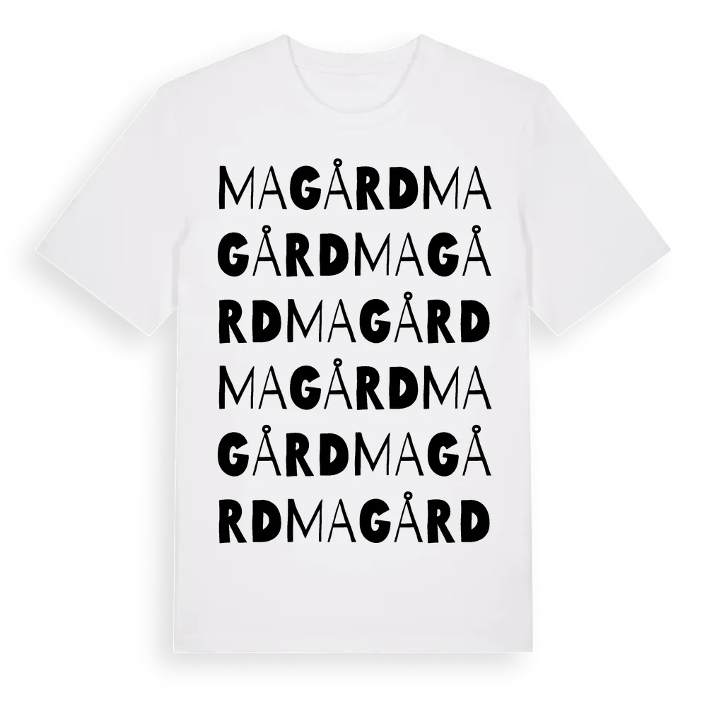 Magård ordlek t-shirt är inspirerad av Magård i Hallands län, Sverige. Tröjan är designad för dig som har en speciell koppling till platsen – oavsett om du bor här, har rötterna här eller bara älskar Magård.