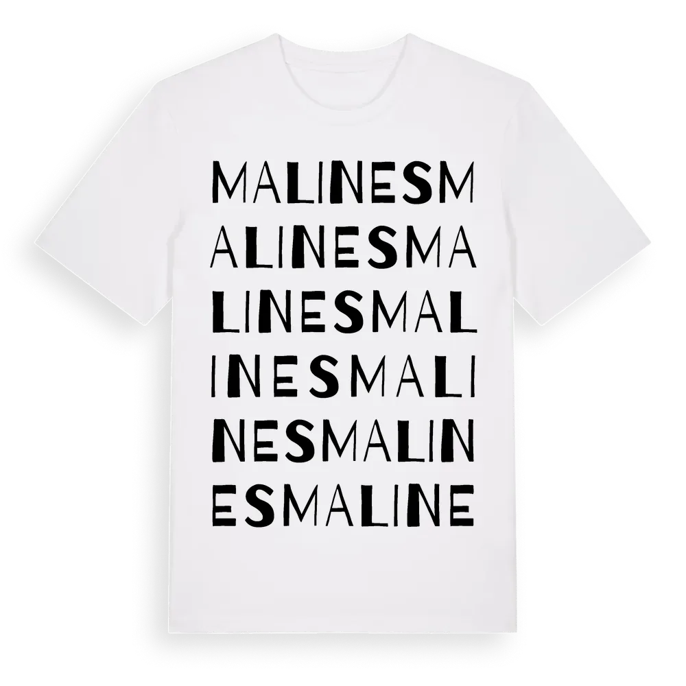 Malines ordlek t-shirt är inspirerad av Malines i Hallands län, Sverige. Tröjan är designad för dig som har en speciell koppling till platsen – oavsett om du bor här, har rötterna här eller bara älskar Malines.