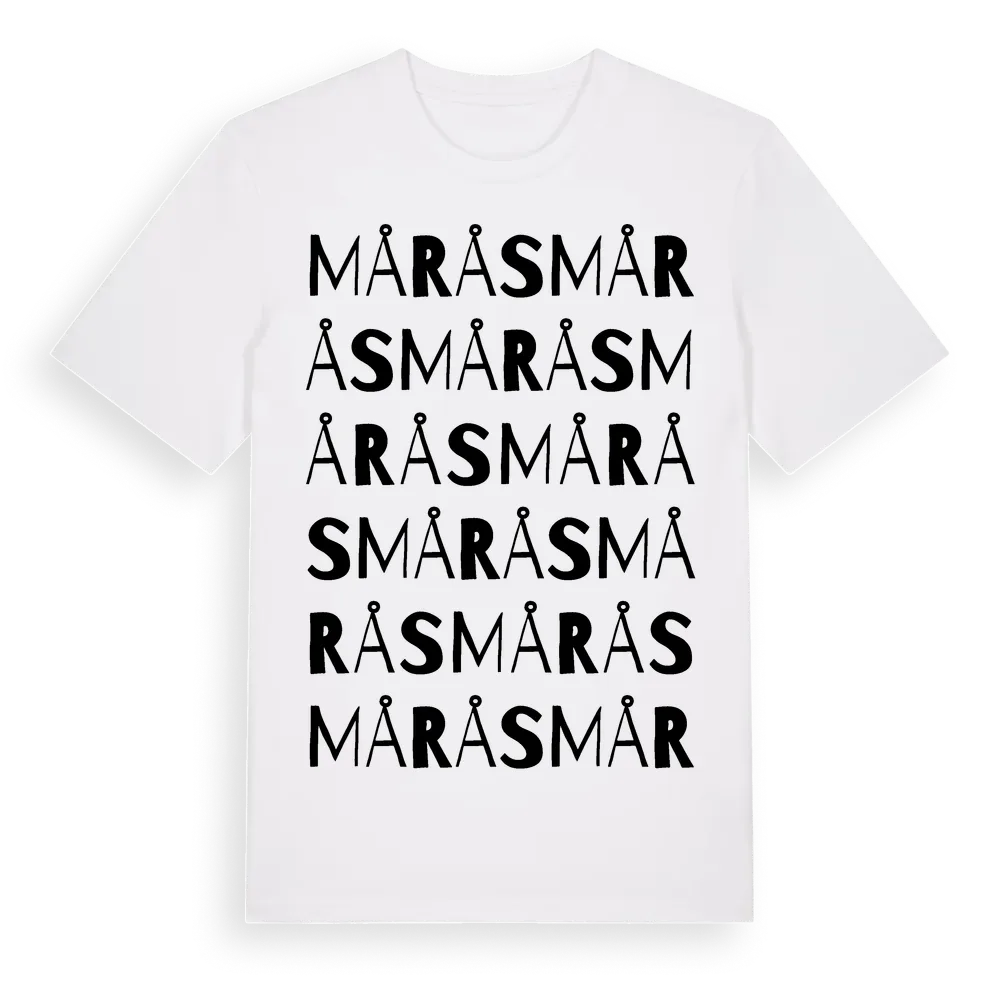 Mårås ordlek t-shirt är inspirerad av byn Mårås i Hallands län, Sverige. Tröjan är designad för dig som har en speciell koppling till platsen – oavsett om du bor här, har rötterna här eller bara älskar Mårås.