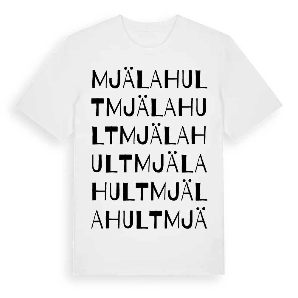 Mjälahult ordlek t-shirt är inspirerad av byn Mjälahult i Hallands län, Sverige. Tröjan är designad för dig som har en speciell koppling till platsen – oavsett om du bor här, har rötterna här eller bara älskar Mjälahult.