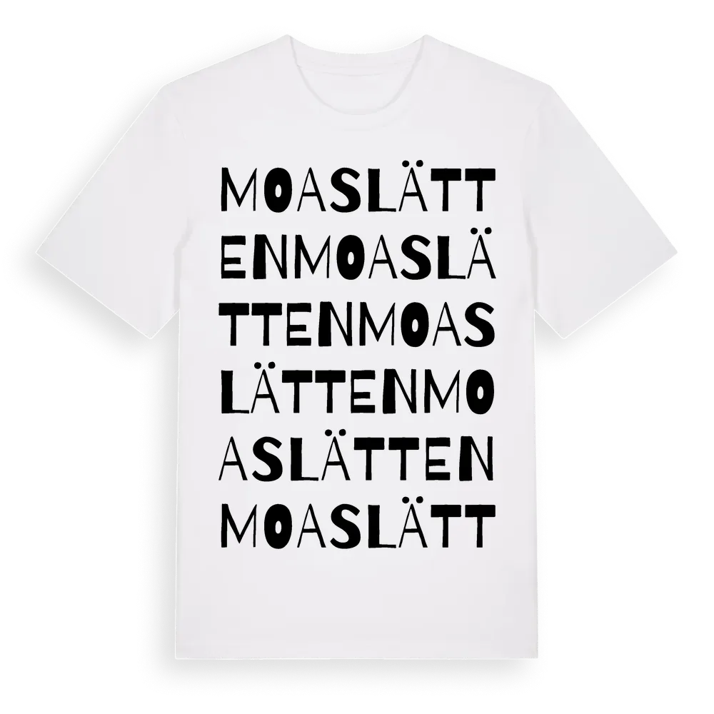 Moaslätten ordlek t-shirt är inspirerad av Moaslätten i Hallands län, Sverige. Tröjan är designad för dig som har en speciell koppling till platsen – oavsett om du bor här, har rötterna här eller bara älskar Moaslätten.