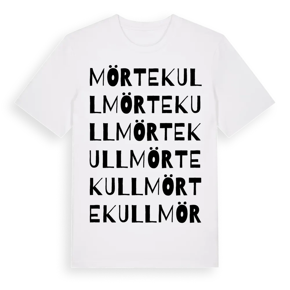 Mörtekull ordlek t-shirt är inspirerad av Mörtekull i Hallands län, Sverige. Tröjan är designad för dig som har en speciell koppling till platsen – oavsett om du bor här, har rötterna här eller bara älskar Mörtekull.