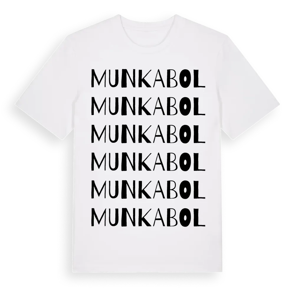 Munkabol ordlek t-shirt är inspirerad av byn Munkabol i Hallands län, Sverige. Tröjan är designad för dig som har en speciell koppling till platsen – oavsett om du bor här, har rötterna här eller bara älskar Munkabol.
