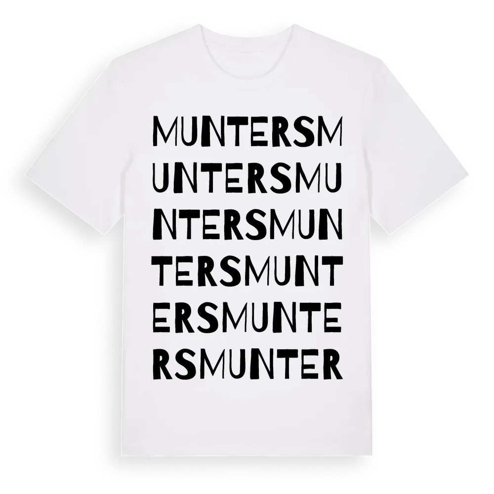 Munters ordlek t-shirt är inspirerad av Munters i Hallands län, Sverige. Tröjan är designad för dig som har en speciell koppling till platsen – oavsett om du bor här, har rötterna här eller bara älskar Munters.