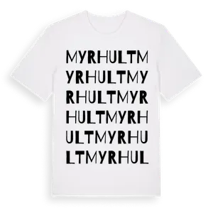 Myrhult i Hallands län, Sverige. Våra t-shirts med motiv från Myrhult är designade för dig som har en speciell koppling till platsen – oavsett om du bor här, har rötterna här eller bara älskar Myrhult.