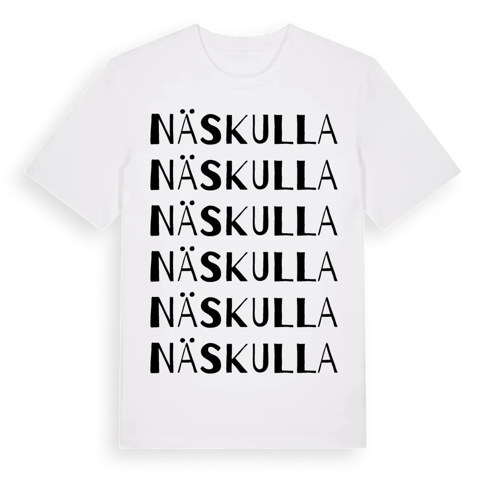 Näskulla ordlek t-shirt är inspirerad av stadsdelen Näskulla i Hallands län, Sverige. Tröjan är designad för dig som har en speciell koppling till platsen – oavsett om du bor här, har rötterna här eller bara älskar Näskulla.
