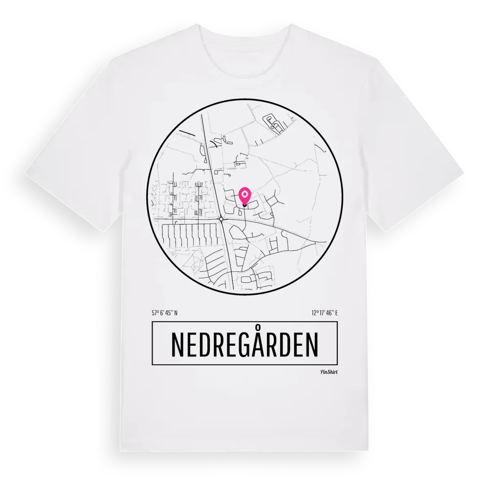 Nedregården t-shirt är inspirerad av stadsdelen Nedregården i Hallands län, Sverige. Tröjan är designad för dig som har en speciell koppling till platsen – oavsett om du bor här, har rötterna här eller bara älskar Nedregården.