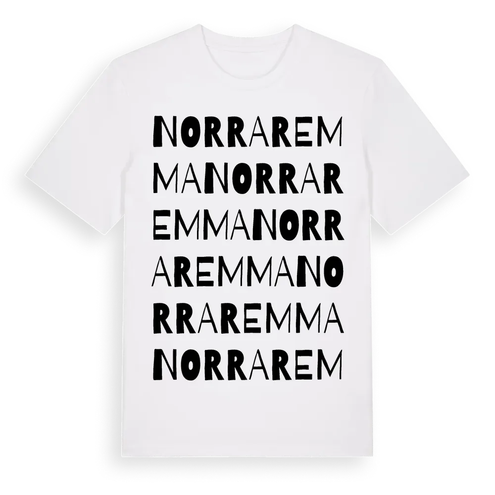 Norra Remma ordlek t-shirt är inspirerad av byn Norra Remma i Hallands län, Sverige. Tröjan är designad för dig som har en speciell koppling till platsen – oavsett om du bor här, har rötterna här eller bara älskar Norra Remma.
