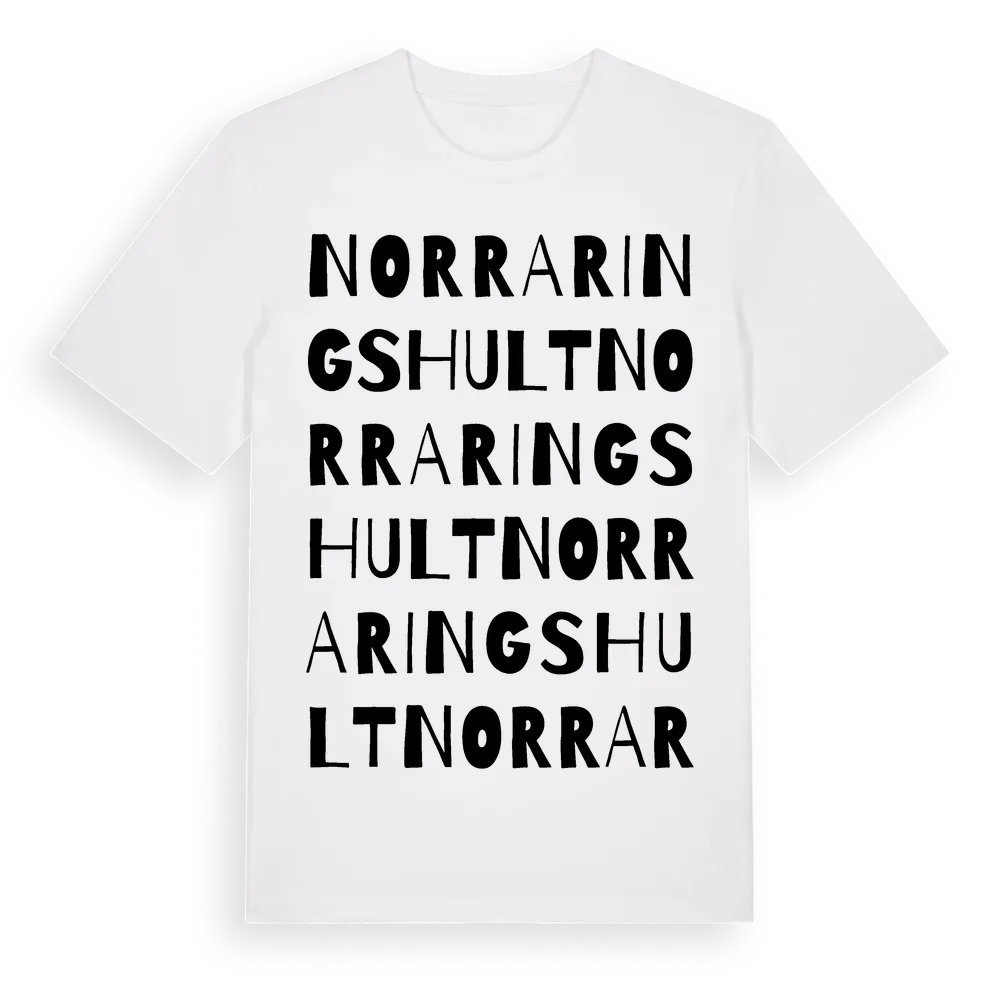 Norra Ringshult ordlek t-shirt är inspirerad av Norra Ringshult i Hallands län, Sverige. Tröjan är designad för dig som har en speciell koppling till platsen – oavsett om du bor här, har rötterna här eller bara älskar Norra Ringshult.