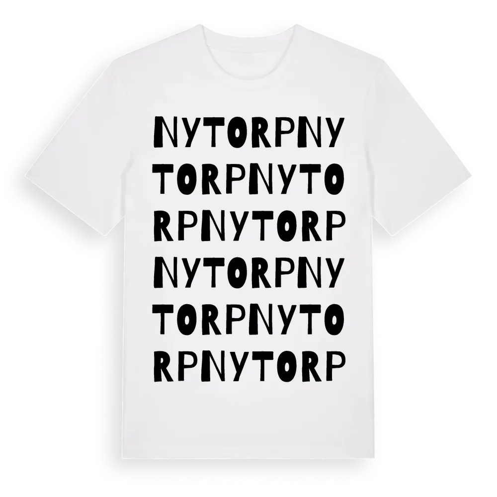 Nytorp ordlek t-shirt är inspirerad av Nytorp i Hallands län, Sverige. Tröjan är designad för dig som har en speciell koppling till platsen – oavsett om du bor här, har rötterna här eller bara älskar Nytorp.