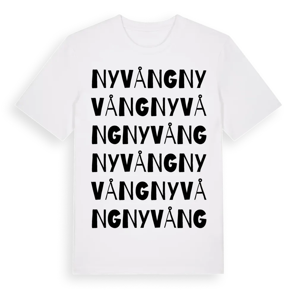 Nyvång ordlek t-shirt är inspirerad av Nyvång i Hallands län, Sverige. Tröjan är designad för dig som har en speciell koppling till platsen – oavsett om du bor här, har rötterna här eller bara älskar Nyvång.