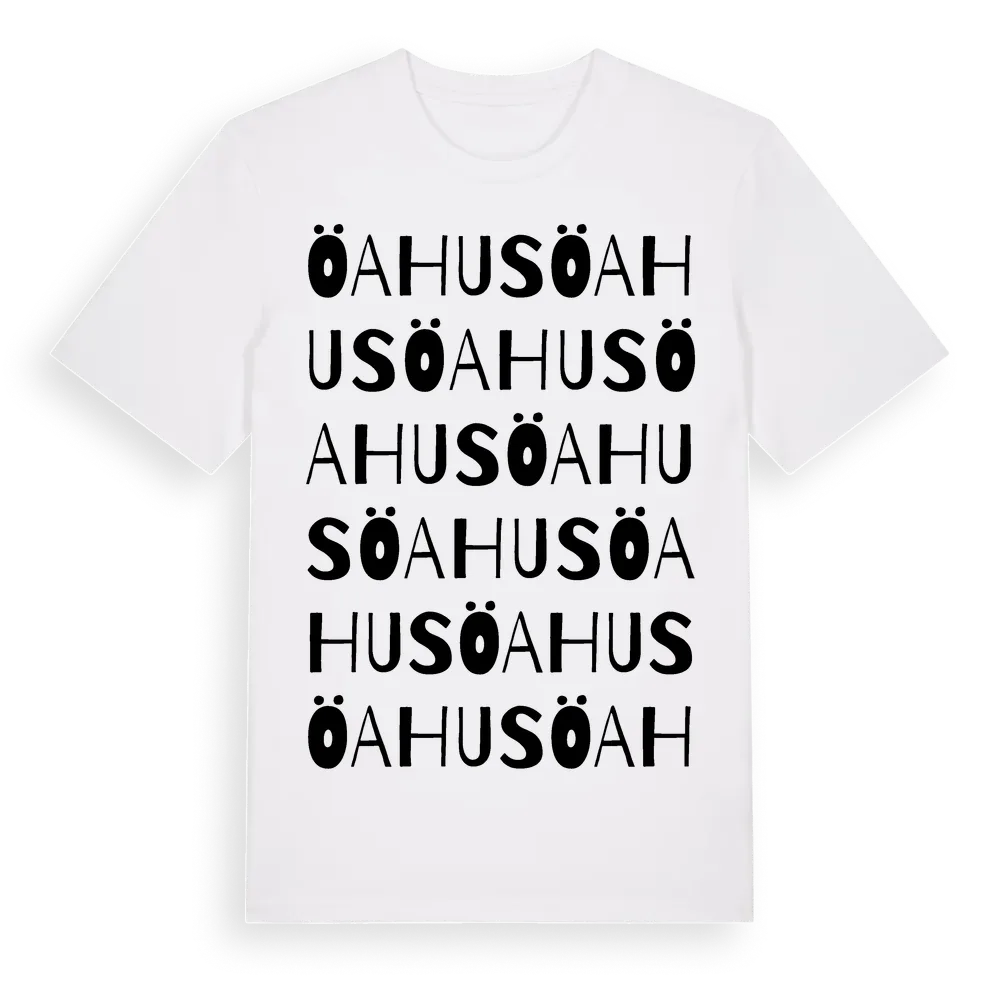 Öahus ordlek t-shirt är inspirerad av Öahus i Hallands län, Sverige. Tröjan är designad för dig som har en speciell koppling till platsen – oavsett om du bor här, har rötterna här eller bara älskar Öahus.