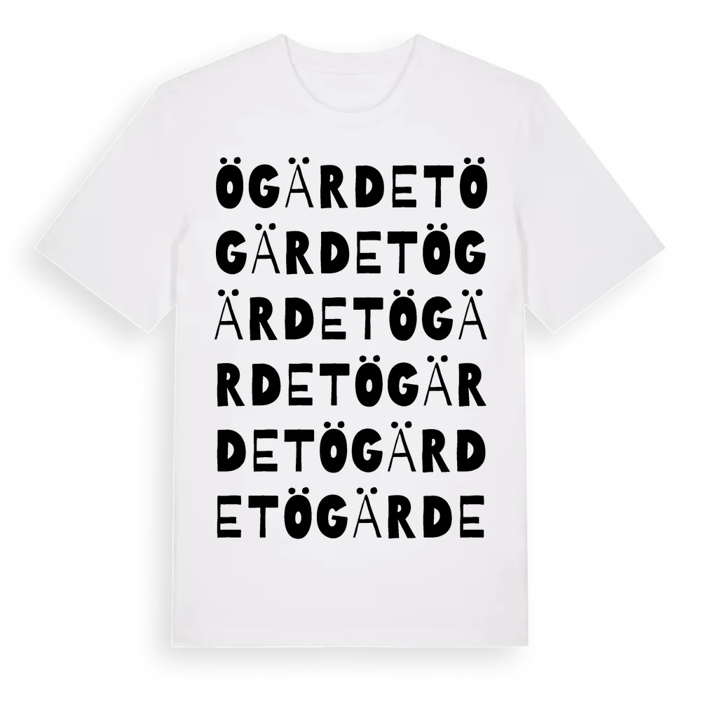 Ögärdet ordlek t-shirt är inspirerad av Ögärdet i Hallands län, Sverige. Tröjan är designad för dig som har en speciell koppling till platsen – oavsett om du bor här, har rötterna här eller bara älskar Ögärdet.