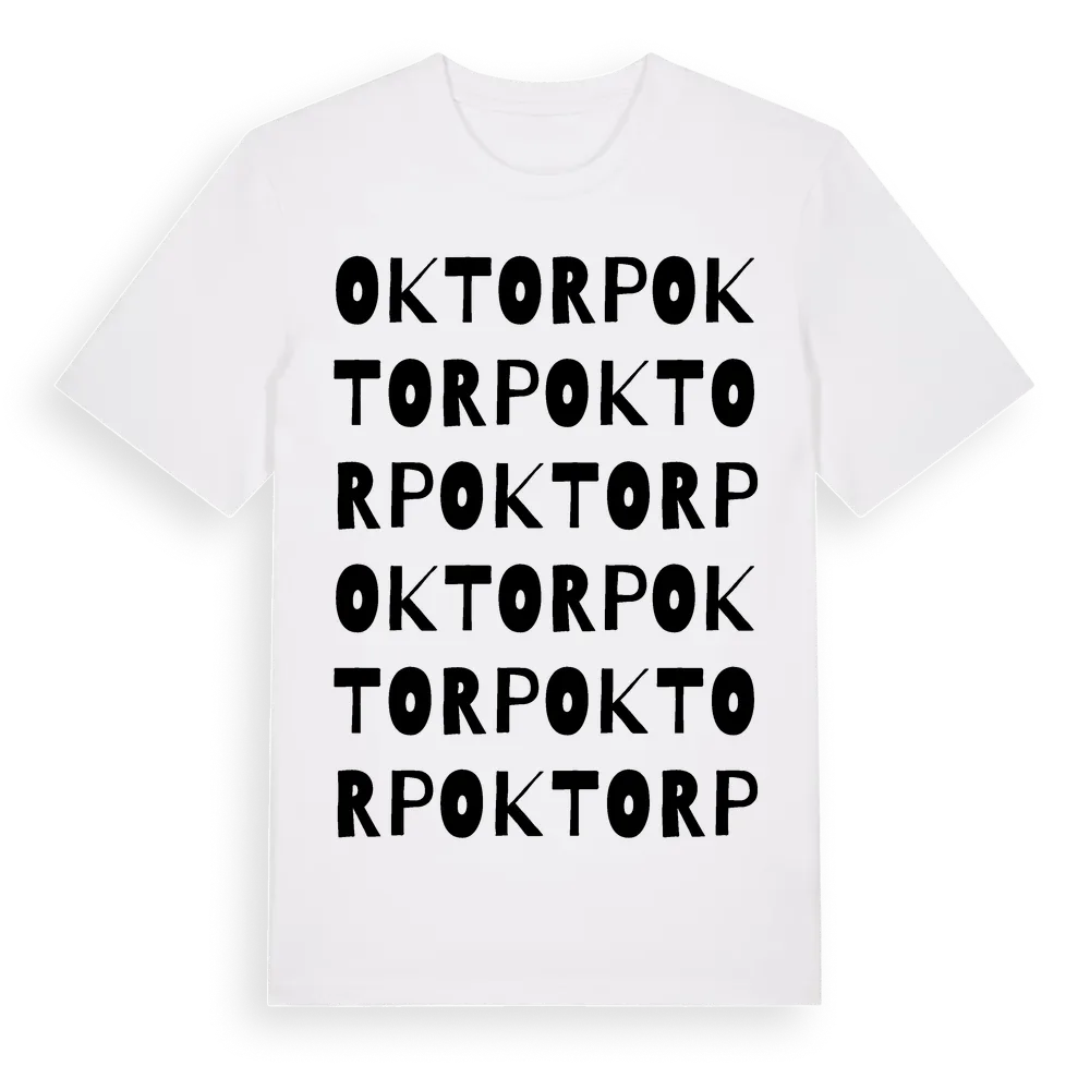 En ordlek byggd på Oktorps namn. Subtilt och klurig – ett motiv som bara de som verkligen känner platsen fullt ut förstår. Premium bomull, unisex – från Oktorp i Hallands län.