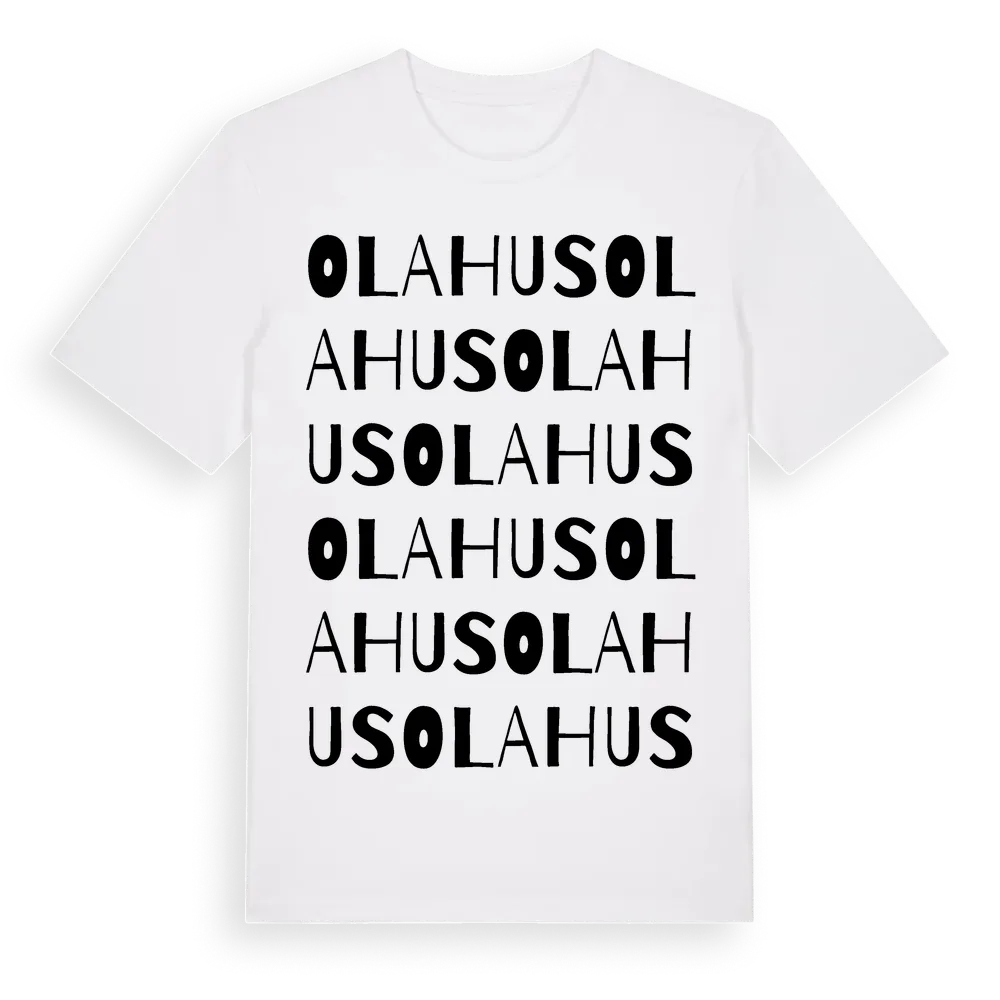 Olahus ordlek t-shirt är inspirerad av byn Olahus i Hallands län, Sverige. Tröjan är designad för dig som har en speciell koppling till platsen – oavsett om du bor här, har rötterna här eller bara älskar Olahus.