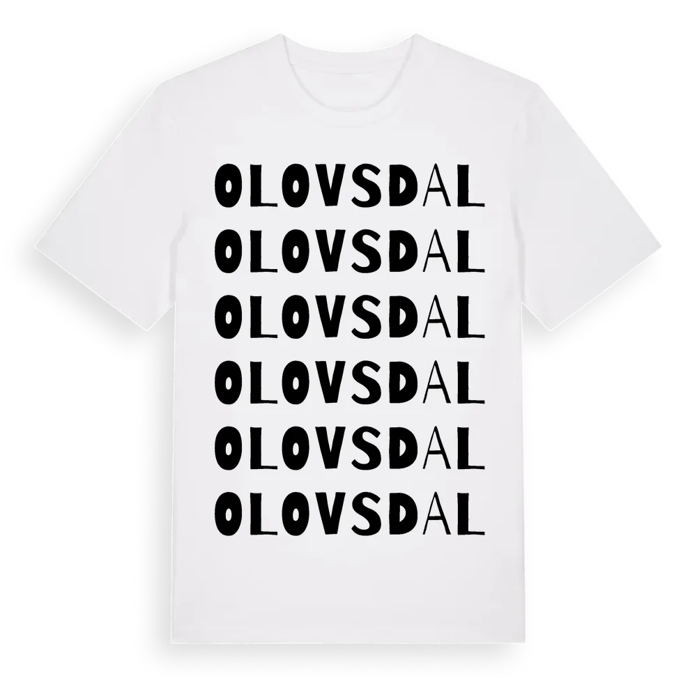 Olovsdal ordlek t-shirt är inspirerad av Olovsdal i Hallands län, Sverige. Tröjan är designad för dig som har en speciell koppling till platsen – oavsett om du bor här, har rötterna här eller bara älskar Olovsdal.