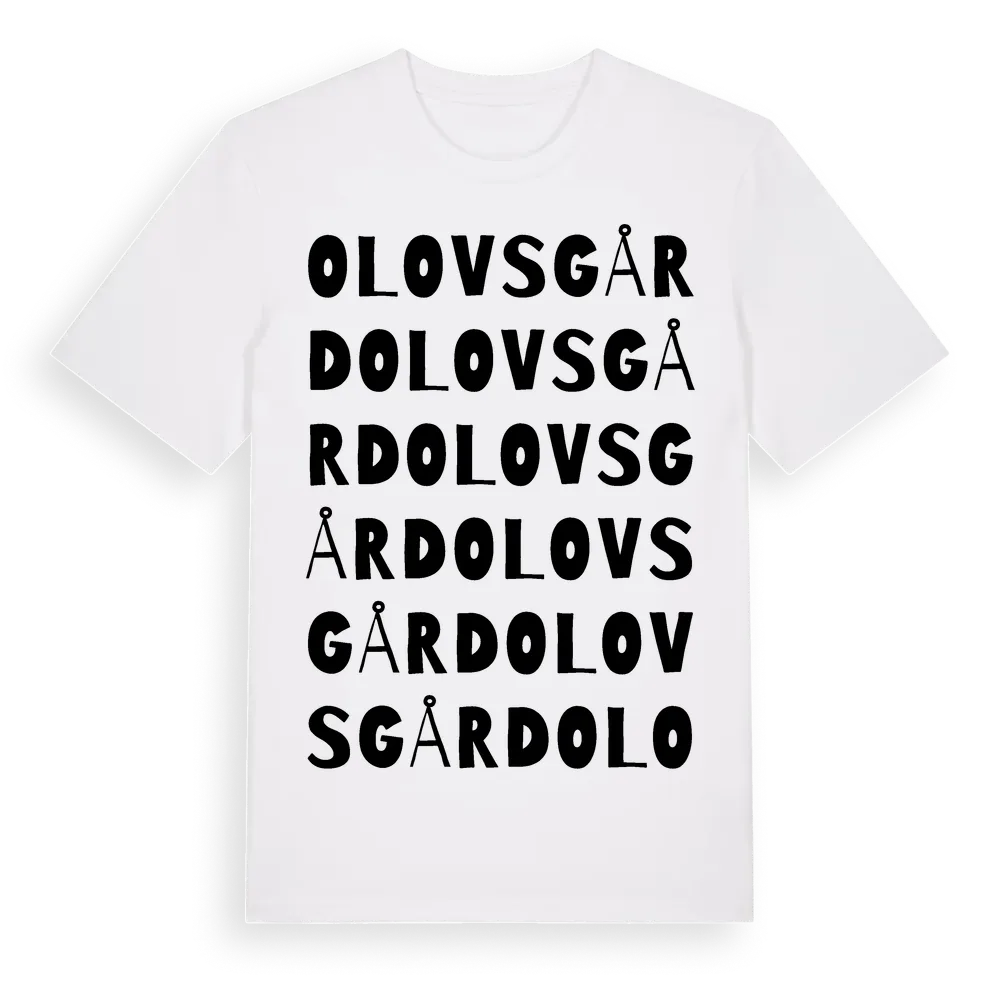 Olovsgård ordlek t-shirt är inspirerad av Olovsgård i Hallands län, Sverige. Tröjan är designad för dig som har en speciell koppling till platsen – oavsett om du bor här, har rötterna här eller bara älskar Olovsgård.