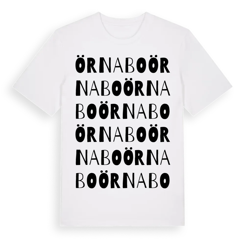 Örnabo ordlek t-shirt är inspirerad av stadsdelen Örnabo i Hallands län, Sverige. Tröjan är designad för dig som har en speciell koppling till platsen – oavsett om du bor här, har rötterna här eller bara älskar Örnabo.