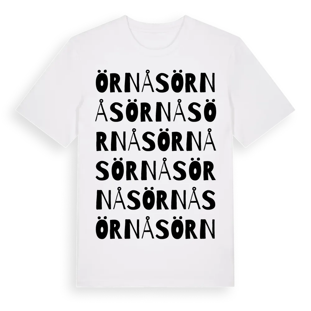 Örnås ordlek t-shirt är inspirerad av Örnås i Hallands län, Sverige. Tröjan är designad för dig som har en speciell koppling till platsen – oavsett om du bor här, har rötterna här eller bara älskar Örnås.