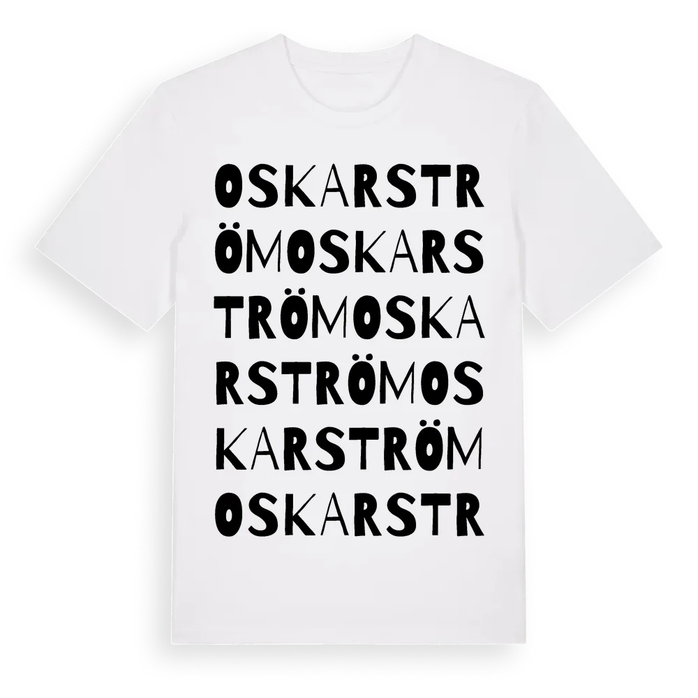 Oskarström ordlek t-shirt är inspirerad av byn Oskarström i Hallands län, Sverige. Tröjan är designad för dig som har en speciell koppling till platsen – oavsett om du bor här, har rötterna här eller bara älskar Oskarström.
