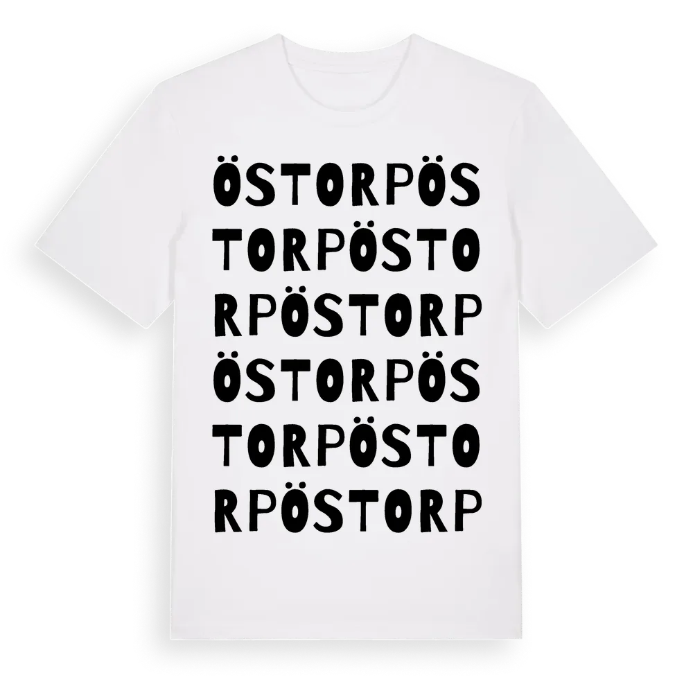 En ordlek byggd på Östorps namn. Subtilt och klurig – ett motiv som bara de som verkligen känner platsen fullt ut förstår. Premium bomull, unisex – från byn Östorp i Hallands län.
