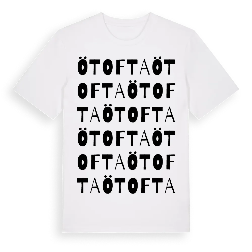 Ötofta ordlek t-shirt är inspirerad av Ötofta i Hallands län, Sverige. Tröjan är designad för dig som har en speciell koppling till platsen – oavsett om du bor här, har rötterna här eller bara älskar Ötofta.