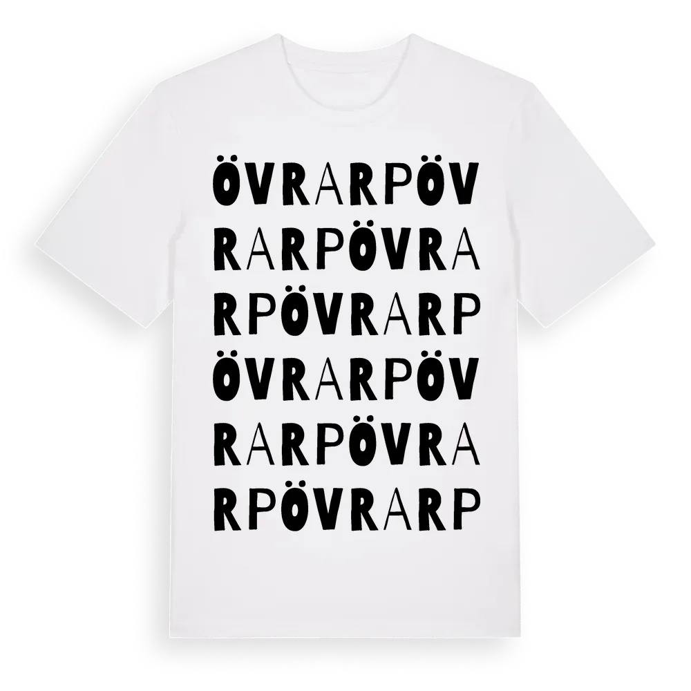 Övrarp ordlek t-shirt är inspirerad av Övrarp i Hallands län, Sverige. Tröjan är designad för dig som har en speciell koppling till platsen – oavsett om du bor här, har rötterna här eller bara älskar Övrarp.