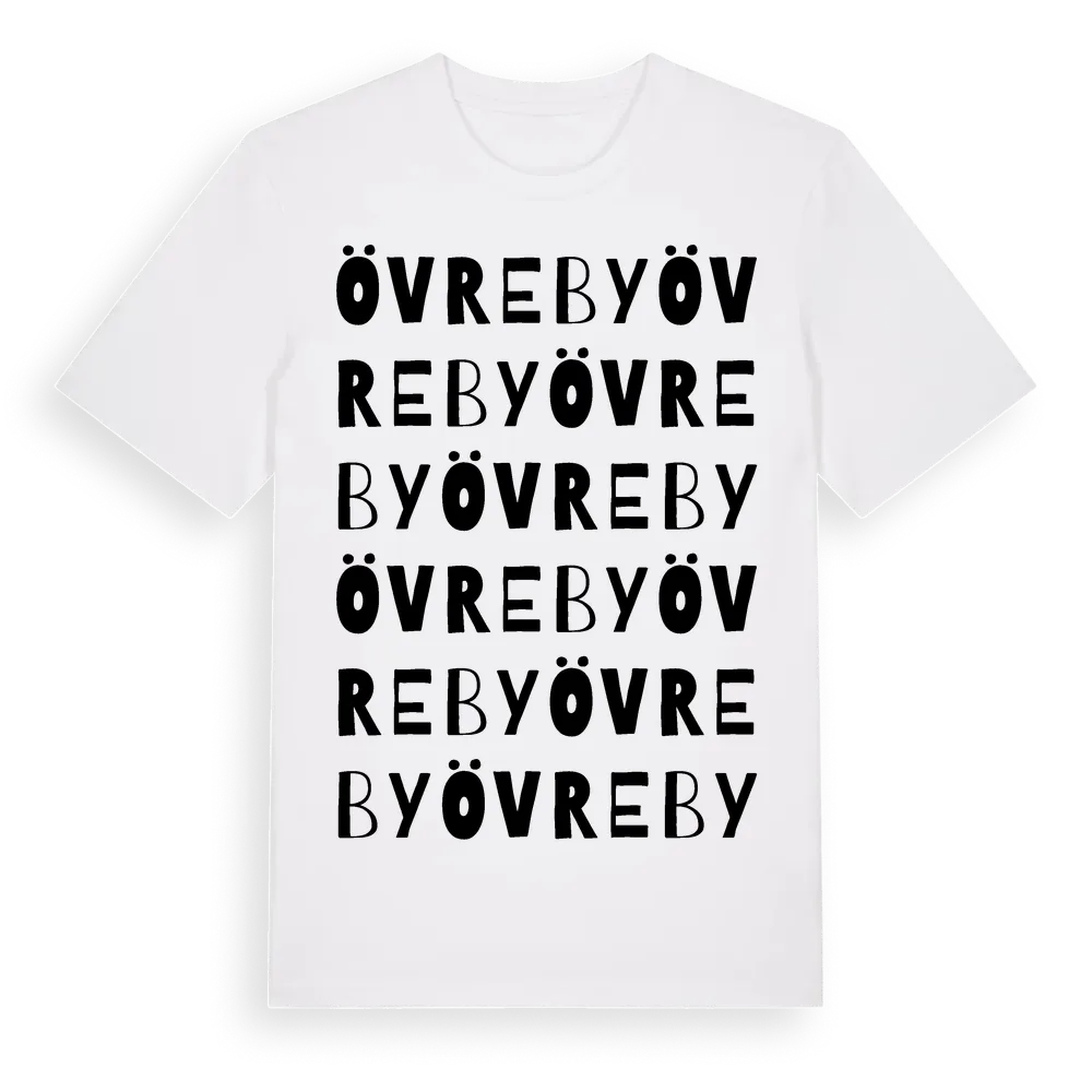 Övreby ordlek t-shirt är inspirerad av byn Övreby i Hallands län, Sverige. Tröjan är designad för dig som har en speciell koppling till platsen – oavsett om du bor här, har rötterna här eller bara älskar Övreby.
