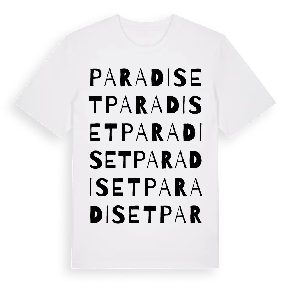Paradiset ordlek t-shirt är inspirerad av Paradiset i Hallands län, Sverige. Tröjan är designad för dig som har en speciell koppling till platsen – oavsett om du bor här, har rötterna här eller bara älskar Paradiset.
