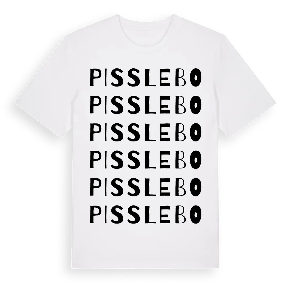 Pisslebo ordlek t-shirt är inspirerad av Pisslebo i Hallands län, Sverige. Tröjan är designad för dig som har en speciell koppling till platsen – oavsett om du bor här, har rötterna här eller bara älskar Pisslebo.