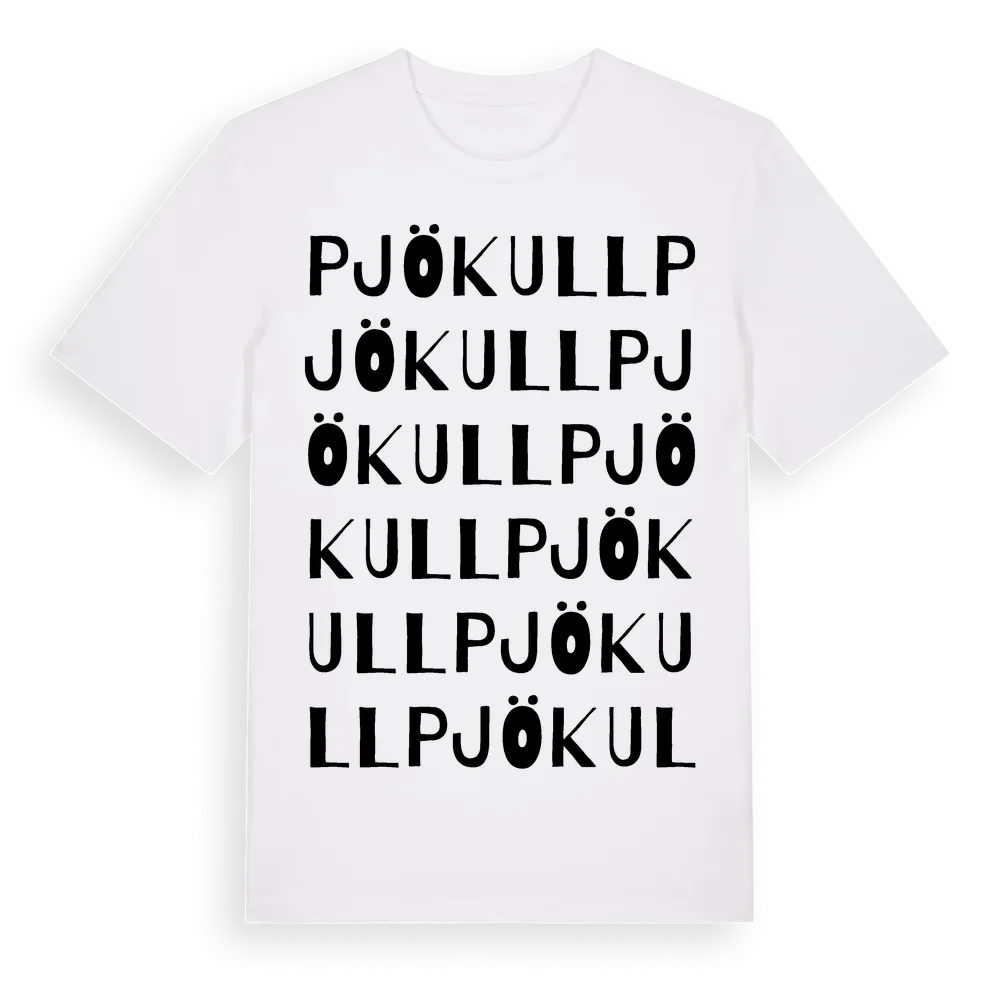 Pjökull ordlek t-shirt är inspirerad av Pjökull i Hallands län, Sverige. Tröjan är designad för dig som har en speciell koppling till platsen – oavsett om du bor här, har rötterna här eller bara älskar Pjökull.