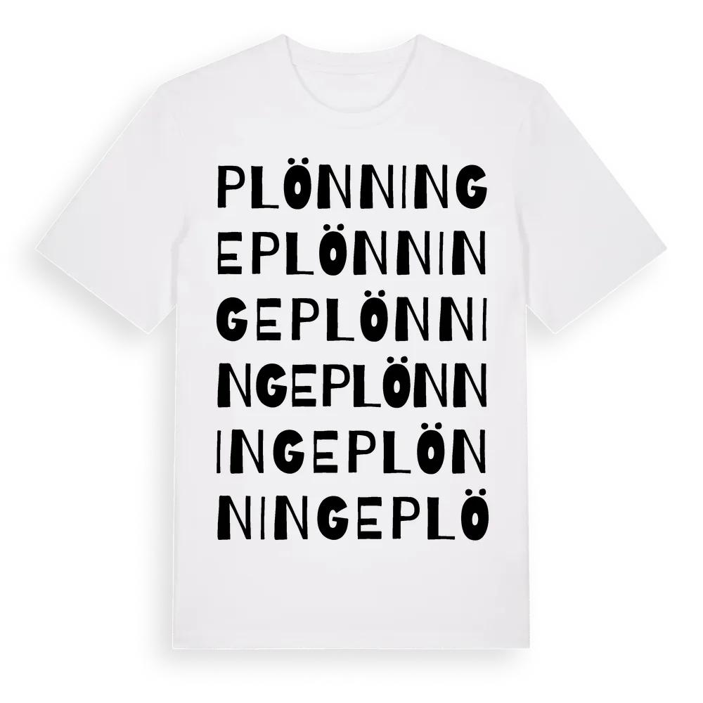 Plönninge ordlek t-shirt är inspirerad av Plönninge i Hallands län, Sverige. Tröjan är designad för dig som har en speciell koppling till platsen – oavsett om du bor här, har rötterna här eller bara älskar Plönninge.