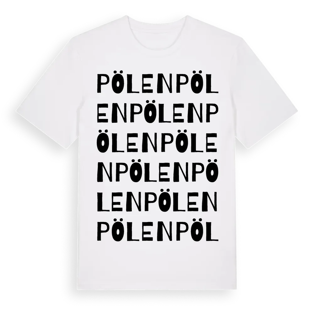 Pölen ordlek t-shirt är inspirerad av Pölen i Hallands län, Sverige. Tröjan är designad för dig som har en speciell koppling till platsen – oavsett om du bor här, har rötterna här eller bara älskar Pölen.