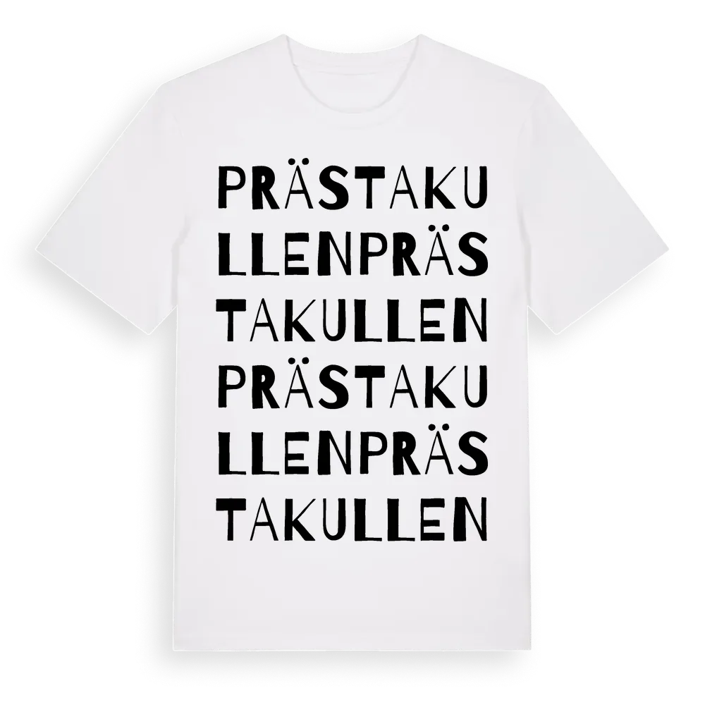 Prästakullen ordlek t-shirt är inspirerad av Prästakullen i Hallands län, Sverige. Tröjan är designad för dig som har en speciell koppling till platsen – oavsett om du bor här, har rötterna här eller bara älskar Prästakullen.