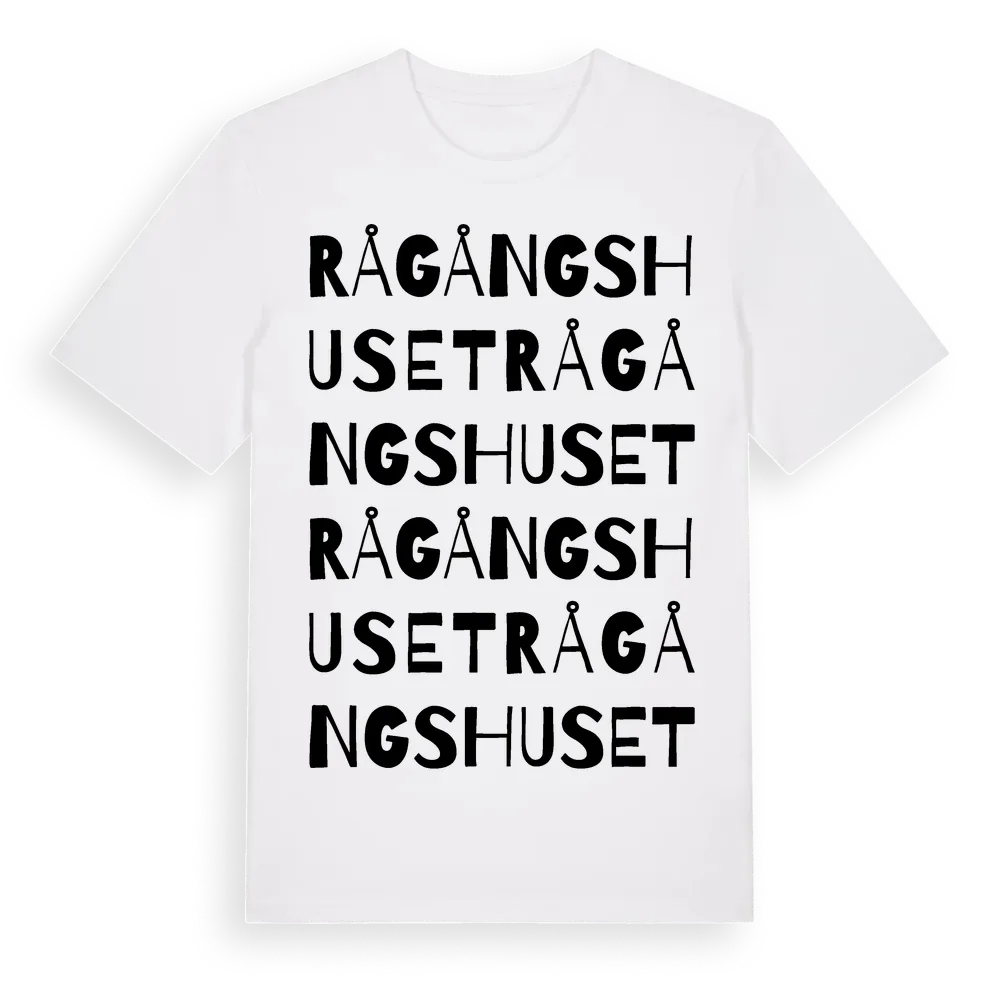 Rågångshuset ordlek t-shirt är inspirerad av stadsdelen Rågångshuset i Hallands län, Sverige. Tröjan är designad för dig som har en speciell koppling till platsen – oavsett om du bor här, har rötterna här eller bara älskar Rågångshuset.