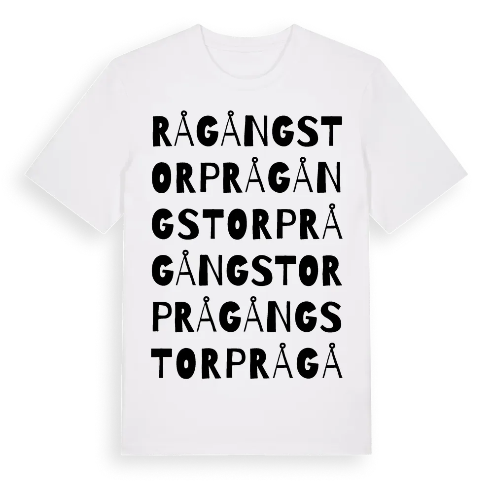 Rågångstorp ordlek t-shirt är inspirerad av Rågångstorp i Hallands län, Sverige. Tröjan är designad för dig som har en speciell koppling till platsen – oavsett om du bor här, har rötterna här eller bara älskar Rågångstorp.