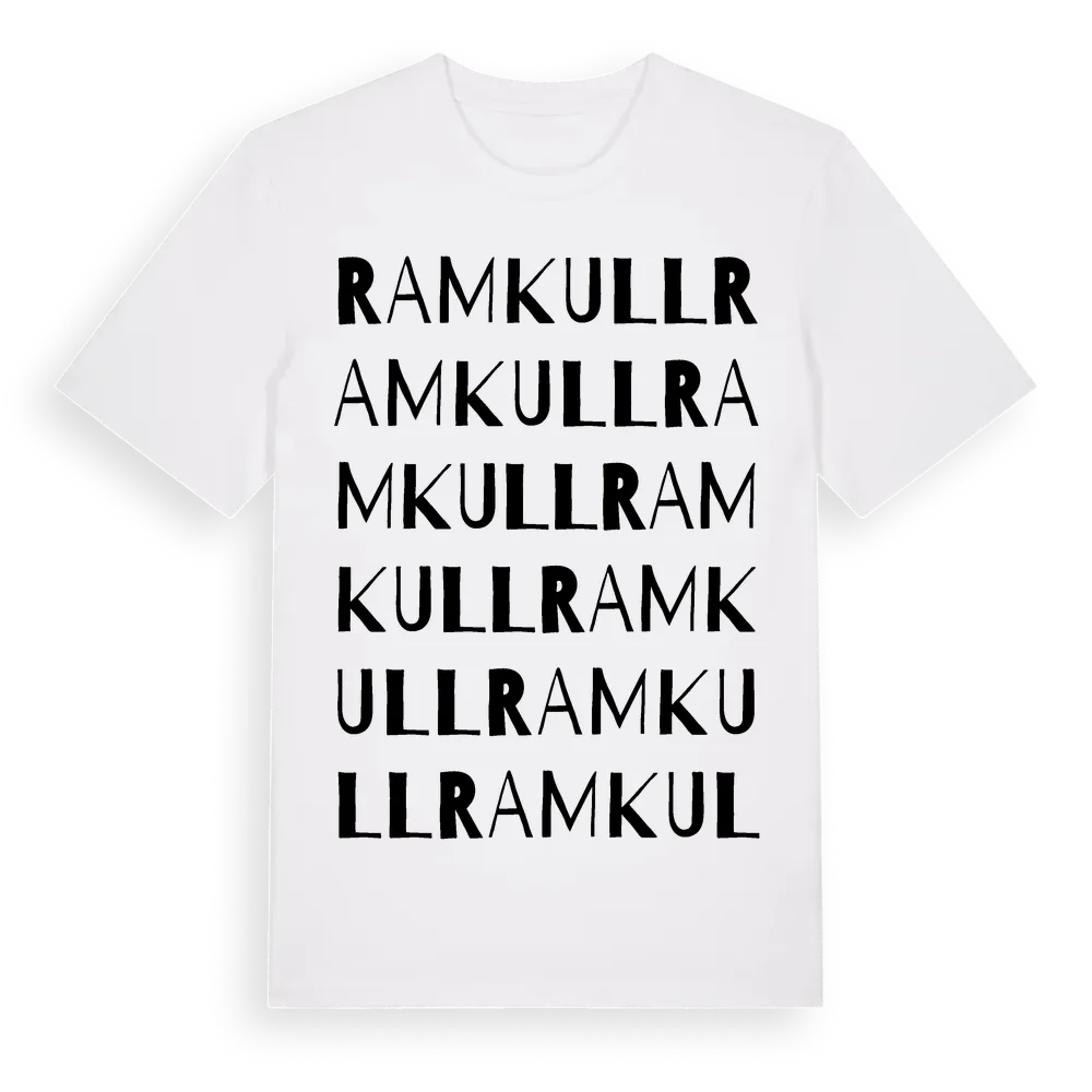Ramkull ordlek t-shirt är inspirerad av Ramkull i Hallands län, Sverige. Tröjan är designad för dig som har en speciell koppling till platsen – oavsett om du bor här, har rötterna här eller bara älskar Ramkull.