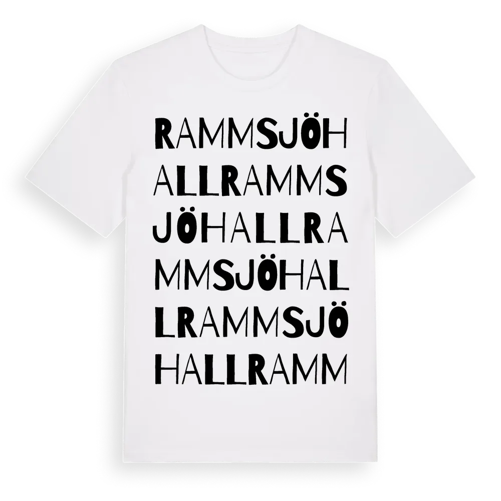 Rammsjöhall ordlek t-shirt är inspirerad av Rammsjöhall i Hallands län, Sverige. Tröjan är designad för dig som har en speciell koppling till platsen – oavsett om du bor här, har rötterna här eller bara älskar Rammsjöhall.