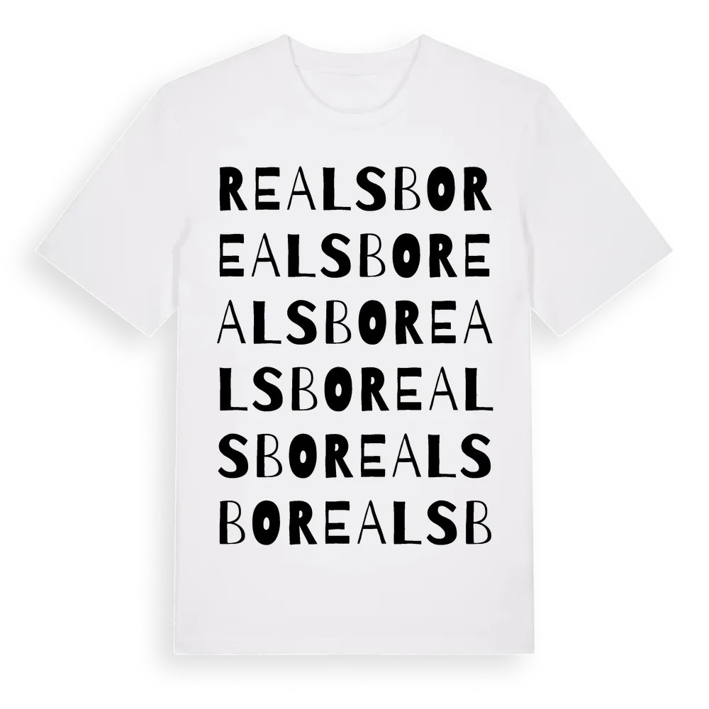 Realsbo ordlek t-shirt är inspirerad av byn Realsbo i Hallands län, Sverige. Tröjan är designad för dig som har en speciell koppling till platsen – oavsett om du bor här, har rötterna här eller bara älskar Realsbo.