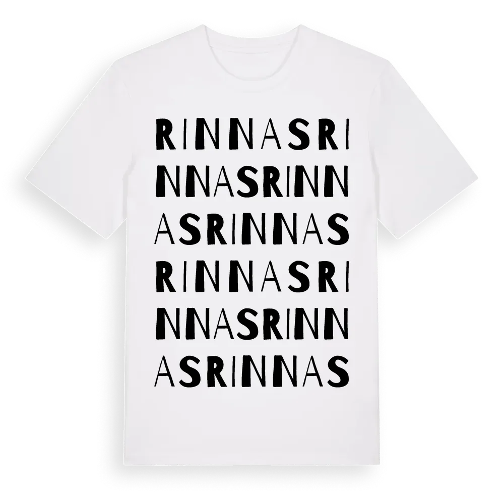 Rinnas ordlek t-shirt är inspirerad av Rinnas i Hallands län, Sverige. Tröjan är designad för dig som har en speciell koppling till platsen – oavsett om du bor här, har rötterna här eller bara älskar Rinnas.