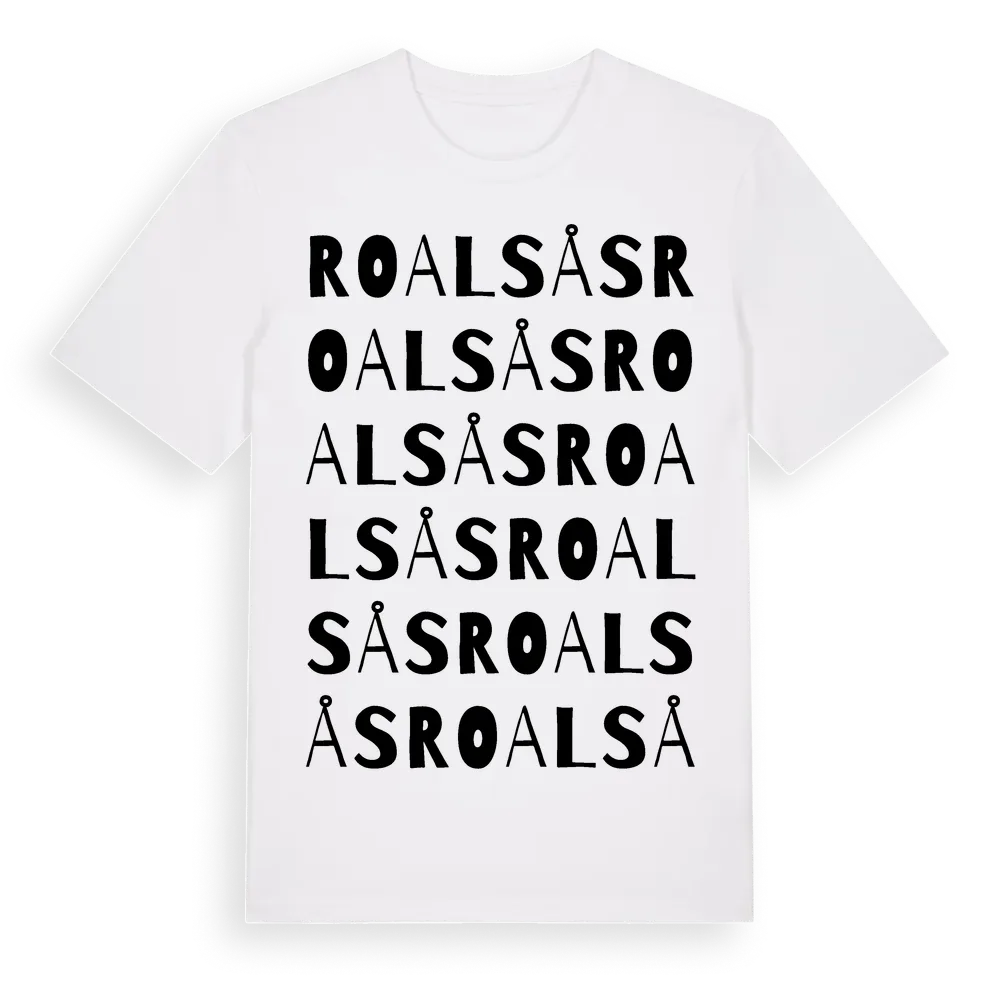 Roalsås ordlek t-shirt är inspirerad av Roalsås i Hallands län, Sverige. Tröjan är designad för dig som har en speciell koppling till platsen – oavsett om du bor här, har rötterna här eller bara älskar Roalsås.