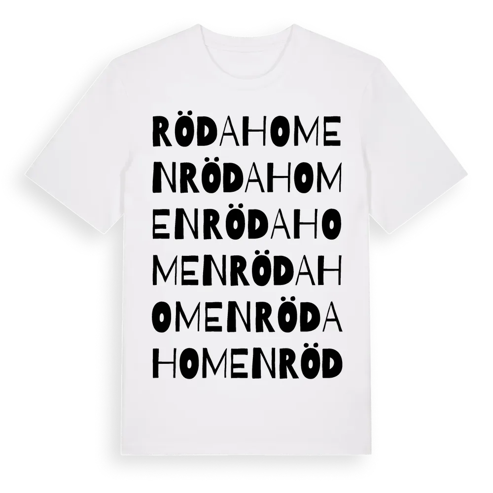 Rödahomen ordlek t-shirt är inspirerad av Rödahomen i Hallands län, Sverige. Tröjan är designad för dig som har en speciell koppling till platsen – oavsett om du bor här, har rötterna här eller bara älskar Rödahomen.